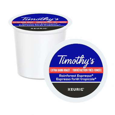 Timothy's Extra Dark Roast Coffee Rainforest Espresso K-Cup Pods