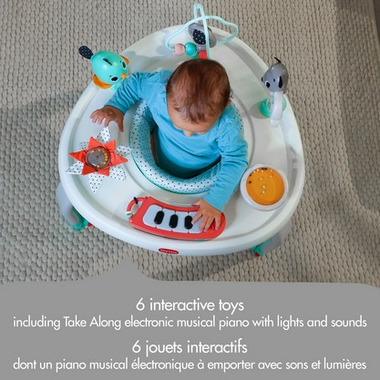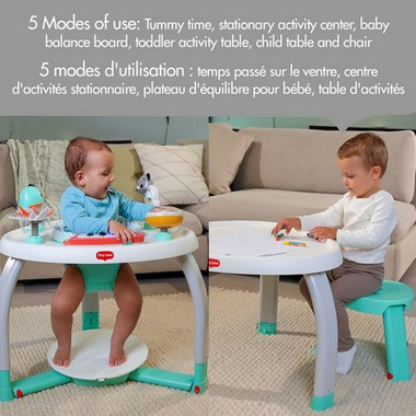Comes with a set of month-by-month developmental milestone cards. LEARN FROM THE EXPERTS! Tiny Love’s Unique Developmental System focuses on 6 ESSENTIAL SKILLS. Created with love and care by their child development experts, this system supports babies as they grow.- 5 Modes of use: Tummy time, stationary activity center, baby balance board, toddler activity table, child table and chair