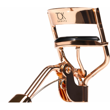 Time to up your lash game. This rose gold curler gently lifts and curls your lashes. Once this step is complete, add a coat of Eyes That TOK Mascara to your lashes.