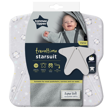 The Tommee Tippee Traveltime Starsuit for babies has been designed for use on-the-go, providing all the comfort and warmth of our wearable blankets but made easy to use with a stroller, carrier or car seat. The Starsuit’s unique shape is designed to make it comfortable for baby as they grow and gives you the flexibility to use it however you travel. However, just to be clear, it is not a car seat accessory. Less bulky than a typical baby sleepsuit or coat, the product doesn't modify or interfere with the function of a car seat. The baby bodysuit features an opening in the back allowing you to feed the car seat strap through the garment.