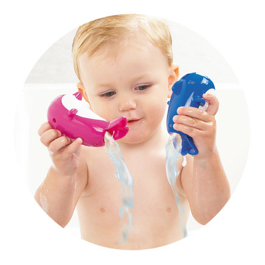 Do-Rae-Mi Dolphins are a colourful and delightful addition to bath time fun! Colour match the dolphins into their rings and link them together in a line or floating circle. Press down on any dolphin's head, while floating in their ring, and they each play a different musical note. Do-Rae-Mi Dolphins are fun in the tub when you create your own songs, colour match with the floating rings, connect them in a circle or create a long, winding line!