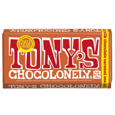 Tony's like to do things differently and this bar is no exception. They took their classic milk chocolate and added crunchy caramel (yea, you heard right) and flakes of sea salt. Sweet and salty never tasted soooo good. It's Tony's best seller worldwide!