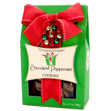 Yummy chocolate peppermint cookies! Perfectly packaged in a giftable box to have on-hand for any last minute holiday parties.