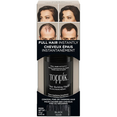 Everyone will notice, no one will know! Toppik Hair Building Fibres instantly give you the look of fuller, thicker hair. Made of natural, coloured Keratin protein that is statically charged, Toppik Fibres intertwine with your existing hair for a completely natural look. Toppik resists wind, rain, and perspiration, so you can go all day worry-free. At the end of the day, Toppik washes off with shampoo. Use with your everyday look or for special occasions. Toppik is also great for facial hair, part lines, covering up extension tracks and touching up roots between colour appointments. For best results, dry and style hair as usual, shake or spray Toppik into thinning areas and gently pat hair to disperse fibres. Your hair will look fuller and thicker after just one application. For over 30 years, Toppik has delivered an innovative, easy-to-use cosmetic solution to people with thinning hair. It's the trusted brand for everything you need to transform fine, thinning hair in seconds.