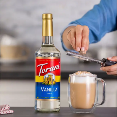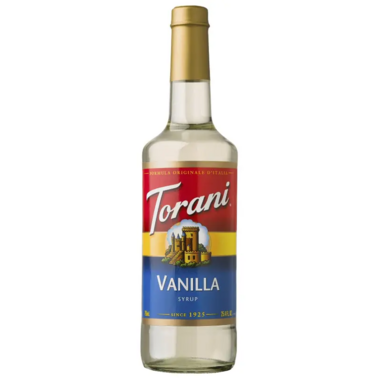 - Classic Torani Vanilla syrup, in a plastic bottle instead of a glass bottle for easier shipping.