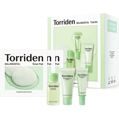 Torriden BALANCEFUL Trial Kit offers a comprehensive skincare regimen featuring four essential products infused with Centella Asiatica to calm and hydrate the skin. This trial-sized set is ideal for travel or for those looking to experience the BALANCEFUL line.
