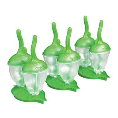 This unique shape is for the outdoor explorer in mind. Comes in a variety of bug shapes and internal stick is designed in a shape of a worm. Available in a set of six, includes six pop molds and three leaf shaped bases.