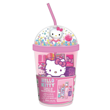 A cute and functional Hello Kitty tumbler filled with a variety of cosmetics, perfect for adding a touch of sweetness to your beauty routine. The tumbler features a dome lid with Hello Kitty's adorable character design, complemented by playful confetti that adds a fun and vibrant twist. It's the perfect way to keep your beauty essentials organized in a charming, whimsical style.
