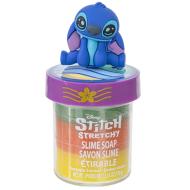 Stretch slime soap with character topper. 3 colours layered into one container. Blueberry scented.