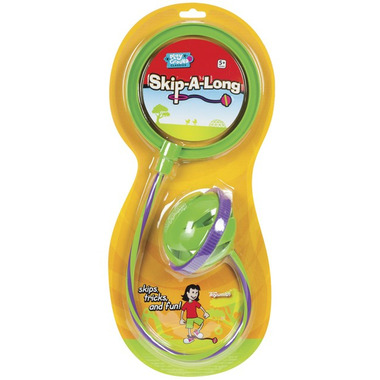 Place one foot in the hoop and send the skipper spinning for a fun jumping game. Smooth rolling action and sturdy construction. Package measures 16" long.