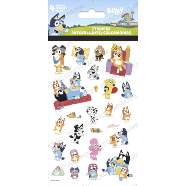 This product includes 2 sheets of 4 Color sticker sheets that are repeated to make 4 sheets. The first set is prismatic paper, and the second set is standard paper. The packaging is part of the sticker sheet. The packaging also includes a clear poly bag.