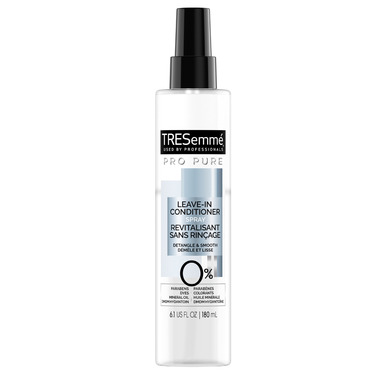 TRESemme Pro Pure Detangle & Smooth Leave-in Hair Conditioner spray is made to provide a worry-free hair care experience. TRESemme's formulations are free of parabens, mineral oil, dyes and DMDM hydantoin. This leave-in conditioner spray for hair is a lightweight solution that detangles and smooths for shiny, silky hair.
