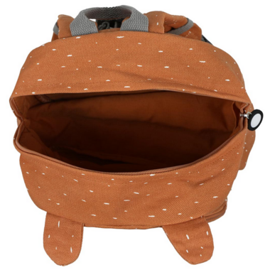 on the inside of the bag. Furthermore, the backpack is water repellent.