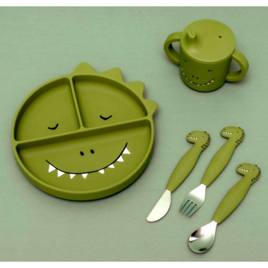 With these cheerful animal friends, discovering new flavours has never been so much fun. The fork, spoon and knife set is specially designed for little ones, with soft, grippy silicone handles that fit tiny hands perfectly, encouraging independent eating with their friendly faces and pretty colours.