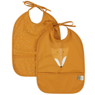 Fun and laughs at the table with your favorite animal friend! This playful set of 2 bibs keeps your little one's clothes clean while enjoying a nice meal, drink, or snack. The handy pocket makes sure all spilled food is neatly caught, making much less of a mess. It comes with practical closing strings that make fitting more adjustable while your child is growing. More good news: the fabric is waterproof and made from 100% recycled polyester and is waterproof! It is easy to wipe clean and saves you a lot of washing or cleaning time.