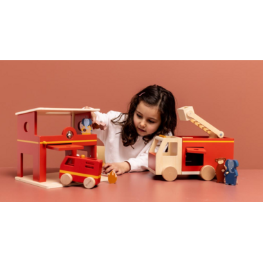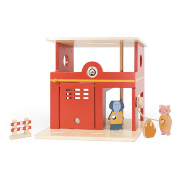 Ding-a-ling! Uh-oh, someone needs our help. This brave team of animals is ready for the rescue in this beautiful wooden fire station. Grab the fire hose, open the gate and rush to the scene of the fire, all the while letting their imagination and creativity run wild. When its time to go home after a good days work, there's a comfortable handle for easy carrying.