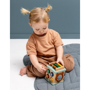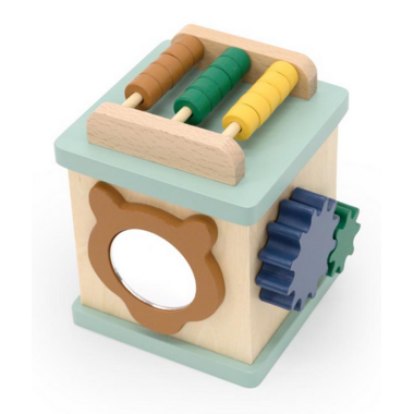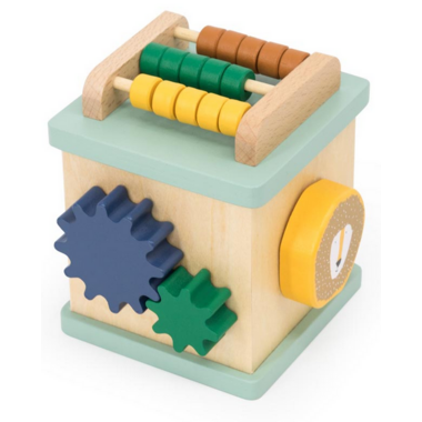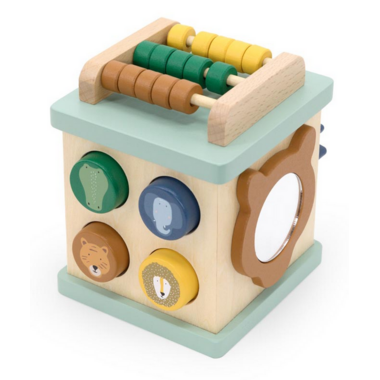 This mini activity cube has plenty of space for fun. Its packed with fascinating features, like a mirror, an abacus and moving parts. There are sound effects and buttons to push, beads to move along and even gears to rotate. In fact, theres something new to discover every time, as they develop their fine motor skills, fine-tune their colour perception and begin to understand cause and effect. There are infinite possibilities for play, so this is a toy that'll be by your baby's side for a long time.
