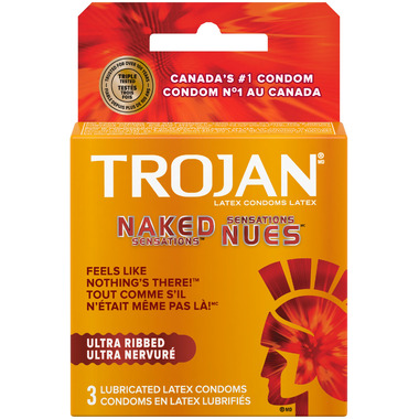 TROJAN Naked Sensations Ultra Ribbed Lubricated Latex Condoms feature a design that lets you feel the pleasure, not the condom. These condoms also feature deep ribs at the base and end for an enhanced experience. Each condom is made from a premium quality latex with a low odour for an enhanced intimate experience.
