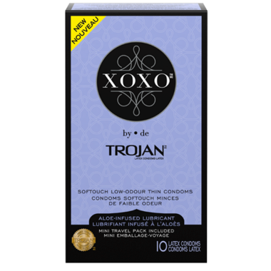 Take the sophisticated approach to protection with XOXO by Trojan. A luxurious new condom with Softouch thin latex and aloe-infused lubricant. Its portable packaging is designed to be discreet, so you can carry it as confidently as you carry yourself.