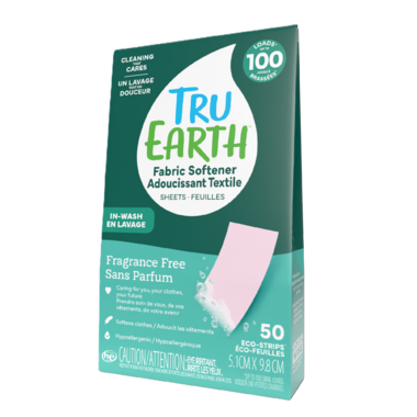 Tru Earth Fabric Softener Fragrance Free. In-wash fabric softener sheets. Caring for you, your cloths and your future.