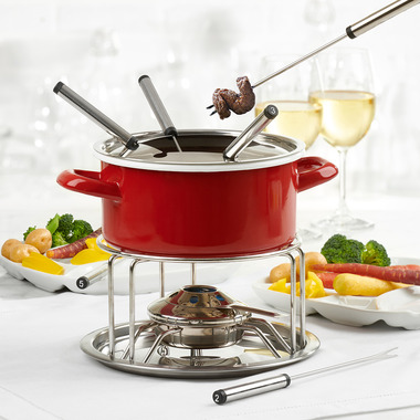 Trudeau 3-In-1 Enamel Fondue Set Red