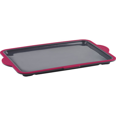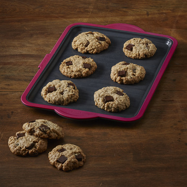 This silicone baking sheet is perfect for smaller ovens meausring 12" x 8 3/4". It's reinforced steel frame makes for safe handling and it's non stick surface promises easy release for all of your culinary creations.