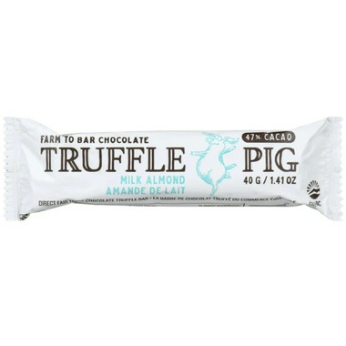 Farm to bar chocolate, Truffle Pig Milk Almond is made with 47% cacao.