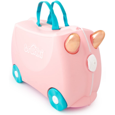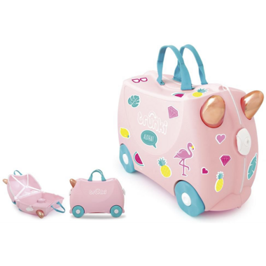 Little flamingos can ride, carry, or be towed along to save tired feet. As with all Trunki ride on suitcases Flossi the Flamingo Trunki has an 18-litre capacity, a comfy saddle, secure lockable catches, a soft rubber trim, and an internal pocket and teddy bear seat belt.