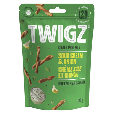 Savory pretzel twists, bold sour cream & onion flavor, baked not fried.