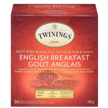 Twinings English Breakfast is 100% pure black tea. Enjoy the smooth, full bodied taste of this classic tea any time of day.