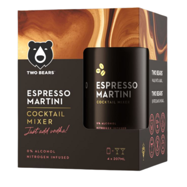 A 4 pack of nitrogen infused espresso martini cocktail mixers with 0% alcohol. Shake well!