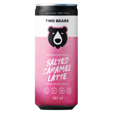 Two Bears Salted Caramel Latte Lactose Free Milk + Coffee provides 10 grams of protein with no added sugar. Perfect over ice or straight from the can.