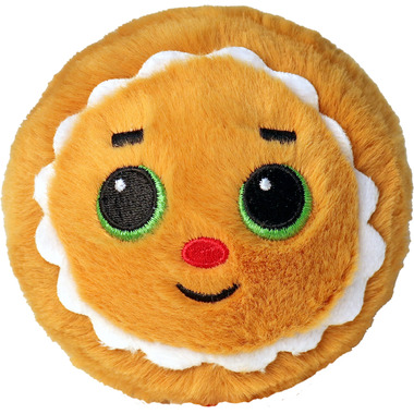 This sweet bouncy plush gingerbread cookie features bright green eyes, a red nose, and a cheerful stitched smile framed with white icing details. Soft yet springy, it’s perfect for tossing, playing, or adding a festive touch to holiday fun.