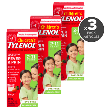 - 3x Tylenol Children's Acetaminophen Suspension Liquid Berry, 100mL