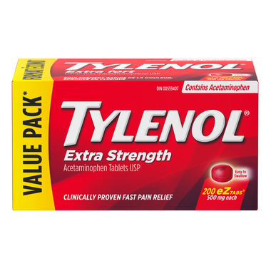 Get fast relief of headaches, aches and pain, and fever reduction with Tylenol Extra Strength 500mg eZ Tabs that are tough on pain, but gentle on your stomach. Containing 500 milligrams of acetaminophen in each tablet, Tylenol Extra Strength offers fast and effective relief of pain and fever. These easy-to-swallow tablets act quickly to provide effective relief of headache, tension headache, mild to moderate migraine pain; pain of mild to moderate arthritis pain, minor muscle sprains and strains, menstrual cramps and aches and pains due to cold and flu.
