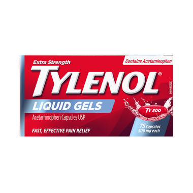 et fast, effective pain relief with Extra Strength Tylenol now available in a liquid gel format. Reduces fever & relieves aches & pains due to headaches, muscular sprains and strains, menstrual cramps, backaches and toothaches. Convenient to keep a pack at home, in your bag, or at the office for liquid-filled pain relief when you need it most. This product comes in an 75-count pack of extra strength liquid gel capsules with 500 milligrams of acetaminophen per capsule. For adults and children 12 years and older: Take 1 capsule every 4-6 hours. If pain or fever does not improve after 1 capsule, take 2 capsules at next dose. Do not take more than 4,000 mg (8 capsules) in 24 hours. Read the complete product label before use and follow all directions. From Tylenol, the number one doctor-recommended pain reliever and fever reducer brand.