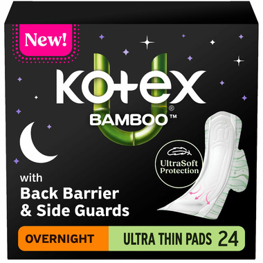 Night Defense: Kotex overnight pads provide overnight protection with back barrier and side guards to help prevent back and side leaks during sleep.