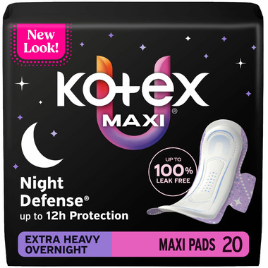Nighttime Protection: Kotex overnight pads provide up to 12 hours of protection in any sleep position.
