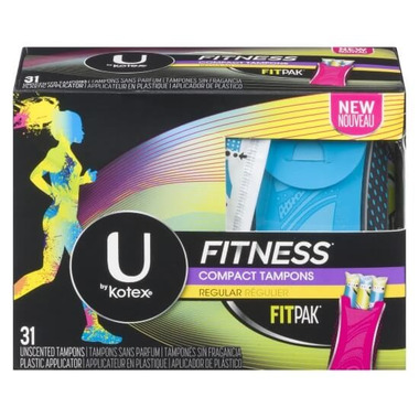 In one click you can go from compact to full-sized protection U by Kotex Fitness Tampons. They expand all around for total protection in every direction and with the durable, compact, and discreet FitPak you’re able to throw them in your gym bag and go.