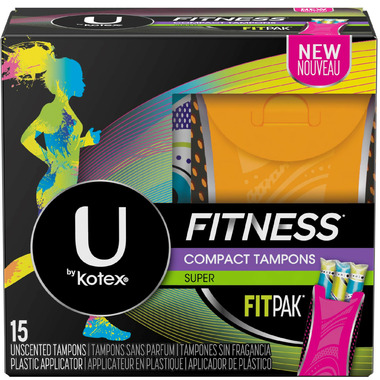 Bodies in motion need comfortable period protection. U by Kotex Fitness Tampons with FITPAK case transform into full coverage protection with regular absorbency. The FITPAK case is a durable, compact and discreet case to help you protect your protection wherever you stash your tampons. Designed to keep your tampons ready for use, the FITPAK case fits three compact tampons. Small in size but big in protection, each tampon features a smooth tip for easy insertion with all-around full coverage. Simply slide the applicator up to create a full tampon before inserting. U by Kotex feminine care products are individually wrapped, unscented, latex-free and lotion-free.