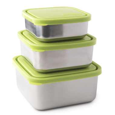 Use U-Konserve's set-of-three leak-proof stainless steel square nesting containers as a non-toxic alternative to plastic containers. These reusable BPA-free food storage containers are perfect for leftovers, sandwiches, salads, fruit and more.