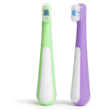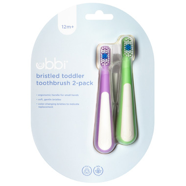 Help your toddler build healthy brushing habits with Ubbi's 2-pack bristled toddler toothbrush set, designed for easy grip and gentle cleaning. Perfect for toothbrush training and toddler learning, each toothbrush features an ergonomic handle made for small hands, ultra-soft bristles that are gentle on gums and teeth, and color-changing bristles that signal when its time for a replacement.