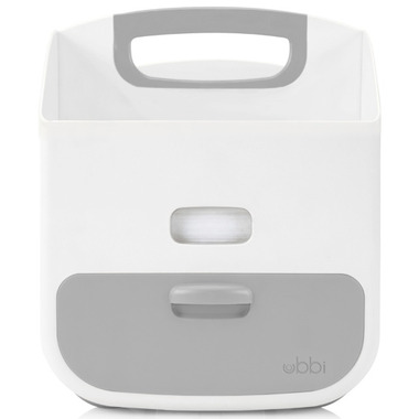 This Ubbi diaper caddy provides parents with convenience, durability and accessibility by having all the diapering supplies organized in one portable storing unit. Made of sturdy plastic, the Ubbi diaper caddy has two main compartments for diapers and wipes, with a drawer for smaller items and a fitted space that includes a comfortable and easy-to-clean changing mat. The caddy also has an integrated handle and non-skid rubber feet allowing it to be carried around or stay safely in one place.
