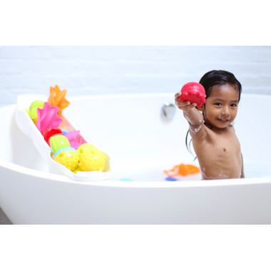 - Holds all of your bath time necessities
