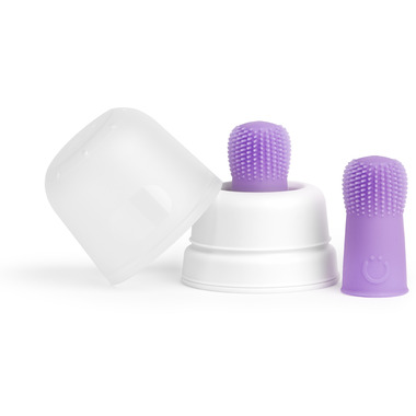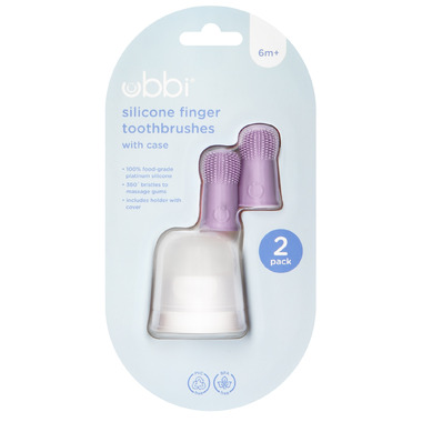 Help soothe sore gums and start healthy brushing habits early with Ubbi's Finger Toothbrush Set. This silicone finger toothbrush and case set is made from 100% platinum-grade silicone, each toothbrush features ultra-soft 360 bristles that gently massage babys gums and clean tiny teeth from every angle. Perfect for teething relief, this training toothbrush is safe for daily use and designed for small mouths. The included hygienic holder with cover keeps the brush clean and protected at home or on the go. PVC-free and BPA-free, its the ideal first toothbrush for your teething baby.