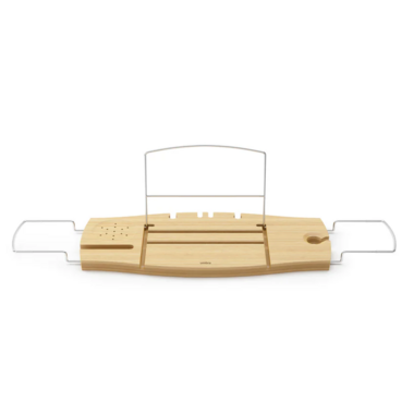 Rated 5 out of 5 by from Beautiful and perfect to unwind! This is such a well made bath caddy and tray!! It has a space for every necessity you can think of (hello wine + phone holder, book holder and more)! It’s also so minimal and beautiful and makes it the perfect caddy to help me unwind at the end of the day! I love that the sides are adjustable no matter the width of the tub and it’s super sturdy! Would recommend, and this would also make a perfect gift!!