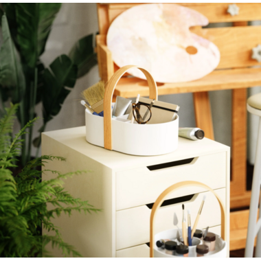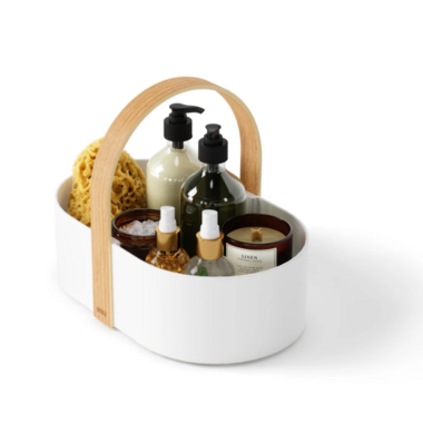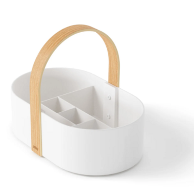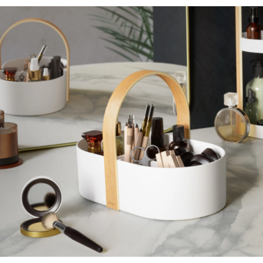 Organize your everyday essentials with Bellwood Caddy. This versatile storage solution can be used for makeup, skincare, craft supplies, stationery and more. Easy to clean, Bellwood Caddy provides easy access with an integrated handle if you need to bring it with you on the go. Its removable divider makes it easy to organize and keep products upright, while its rubber feet protect your surfaces from damage.