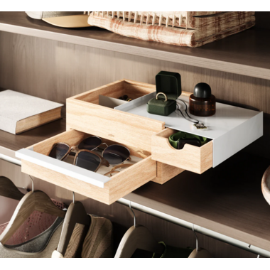 This is a beautiful jewellery box that also acts as an art piece!! Enough room for all of my stuff and organizes it all in a way that is easy to see. I'm finding that I'm wearing more of my pieces because of convenience. The only thing I have to say is I was slightly disappointed with the way the beautiful material was glued/attached to the box but Umbra was amazing and helped me in making sure this was rectified.