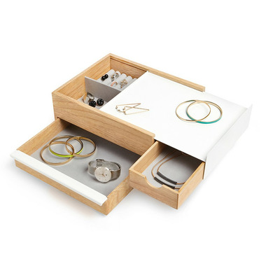 I wanted something simple, and with a wood/organic feel. This box does that. It is able to hold all of my jewelry, and I appreciate how it slides out. The lining is protective for jewelry. It is quite large & heavy, and takes up a lot of counter space, so if you don’t need all of that room to store jewelry, I’d consider getting the smaller stowit. One design quality that I don’t like, is that the metal on the side does not lie flat when the box is closed. There’s a small gap at the top, and then the metal comes down and in at an angle. I thought it was a manufacturing flaw until I looked at the stowit pictured on the packaging, and saw the same gap. If Umbra wanted to figure out a solution & create a Stowit 2.0, I think that’d be great...but I’m happy enough with what I paid for. If you have quality watches, I’d suggest a separate storing solution (to display them properly on their cushions facing up).