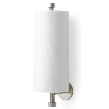 With its nickel finish and round finials, CAPPA is a simple and elegant paper towel holder that can mount horizontally, vertically or under the cabinet. Nickel-plated, this wall-mounted paper towel holder can tackle regular use with ease. Fits any size paper towel roll. Easy to load.